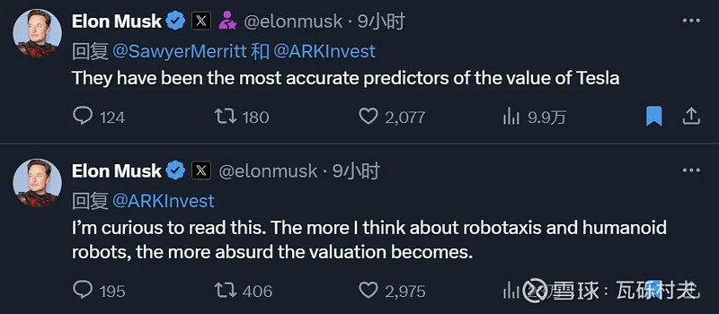 “我很想读读这份报告。我对robotaxi和人形机器人思考的越多,估值就越荒谬。”