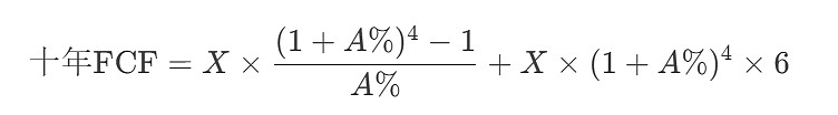 1)十年FCF估算:假设前3年复合增速为A%,后续零增长: