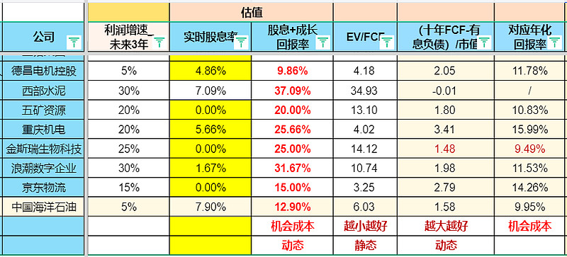 3. (十年FCF-有息负债)/市值法(综合估值)