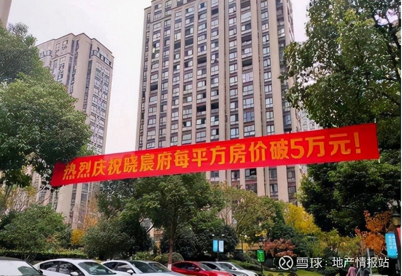 甚至有小区居民拉了横幅,庆祝小区房价突破5万/㎡、10万/㎡大关。