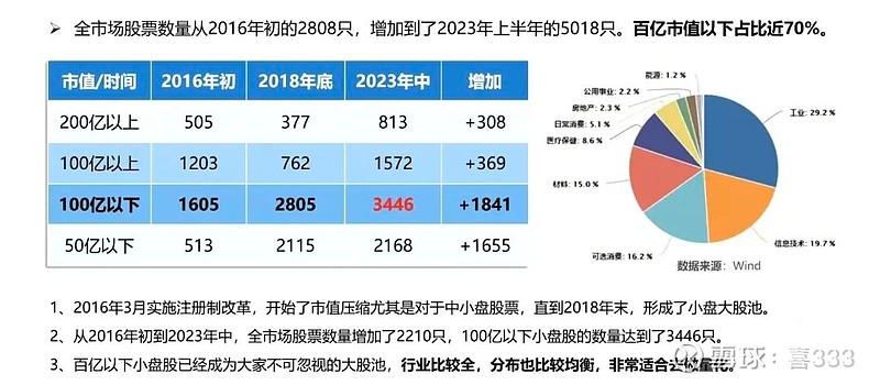 1,现在的A股,百亿市值以下的股票占比近70%。