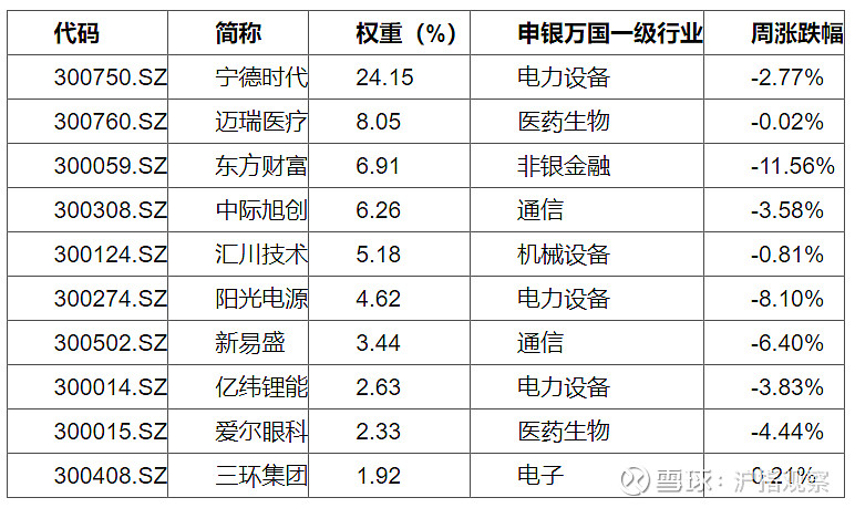 创业板50中前十权重股表现情况