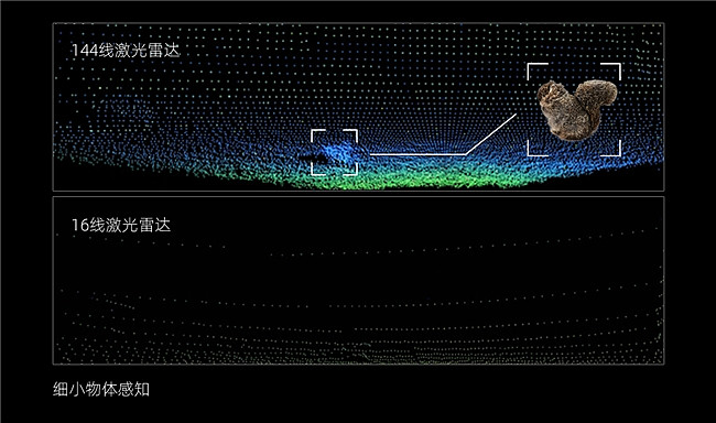 参考知乎博主中关村数码科技猿整理的割草机激光雷达天梯图,可见线数越大、分辨率越高、成像越清晰。144线和192线激光雷达的对小刺猬的探测可以非常清晰,而16线激光雷达根本无法确认小刺猬是否存在,高性能激光雷达和低性能激光雷达的探测能力差异之大,恍如两类传感器。