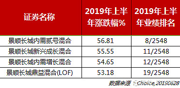 在管基金6只,剔除今年刚任职的景顺长城集英两年定开混合、景顺长城绩优成长混合,余下的4只今年上半年涨幅均超50%。