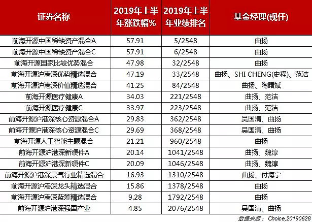 但是,有一点需要提请大家注意,曲扬管理多只基金,其中沪港深主题的亦是多只,然而,前海开源沪港深新机遇混合、前海开源沪港深蓝筹精选混合、前海开源沪港深龙头精选混合今年上半年涨幅不足20%。