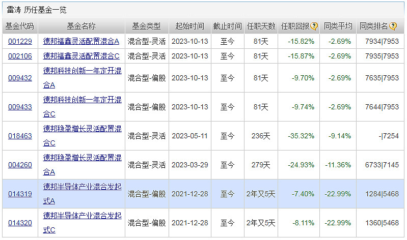 截至2023年12月底,他在管基金任职回报都是负的,也不知道他在家做了多少家务了。