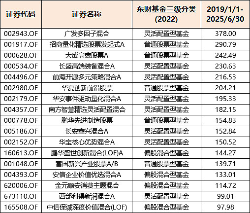 有15只近六年半以来的累计回报超过100%,广发多因子混合、招商量化精选股票发起式A、大成高鑫股票A、长盛高端装备混合A、前海开源多元策略混合A、华夏创新前沿股票收益率超200%。