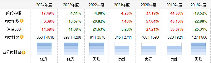 安信企业价值优选混合A是张明的代表作,每一年度都在同类前列。