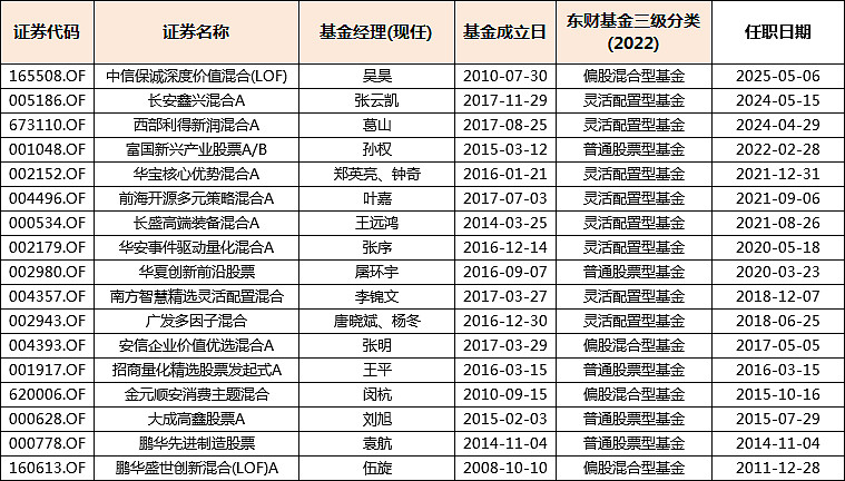 现任基金经理任职日期在2019年前的仅有8只。