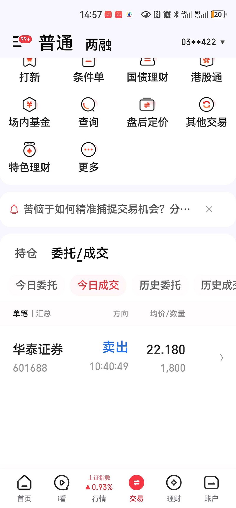 今天把昨天短线买的华泰证券卖了,赚了点零花钱,大盘今天高开高走,上证指数重新站上了四千点,4000点是牛熊分界线,也是本轮牛市主升浪的起点。坚定不移看好券商,目前大部分券商的估值普遍都不高,业绩增长的确定性却很高,股价上涨是早晚的事情。牛市不满仓,两眼泪汪汪!$东方财富(SZ300059)$ $华泰证券(SH601688)