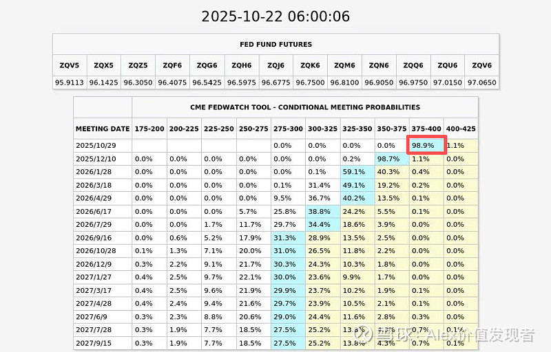 1、美国9月CPI数据公布,同比3%、核心同比3%,低于市场预期的3.1%和3.1%,交易员们瞬间切换到“宽松模式” 。美股三大指数创历史新高,流动性传导是最直接的驱动力。CPI数据公布后,CME FedWatch工具显示12月降息概率从91%飙升至98.9%,市场甚至押注年内还有两次降息 。这直接引发美债收益率松动,10年期美债收益率已显现向3.75%回落的迹象。