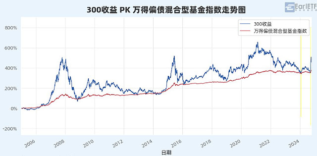 这个图是偏债混合基金指数和沪深300全收益指数的走势对比。
