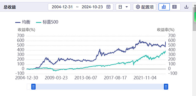 当股市走单边牛市时,股债组合就跑不赢标普500。
