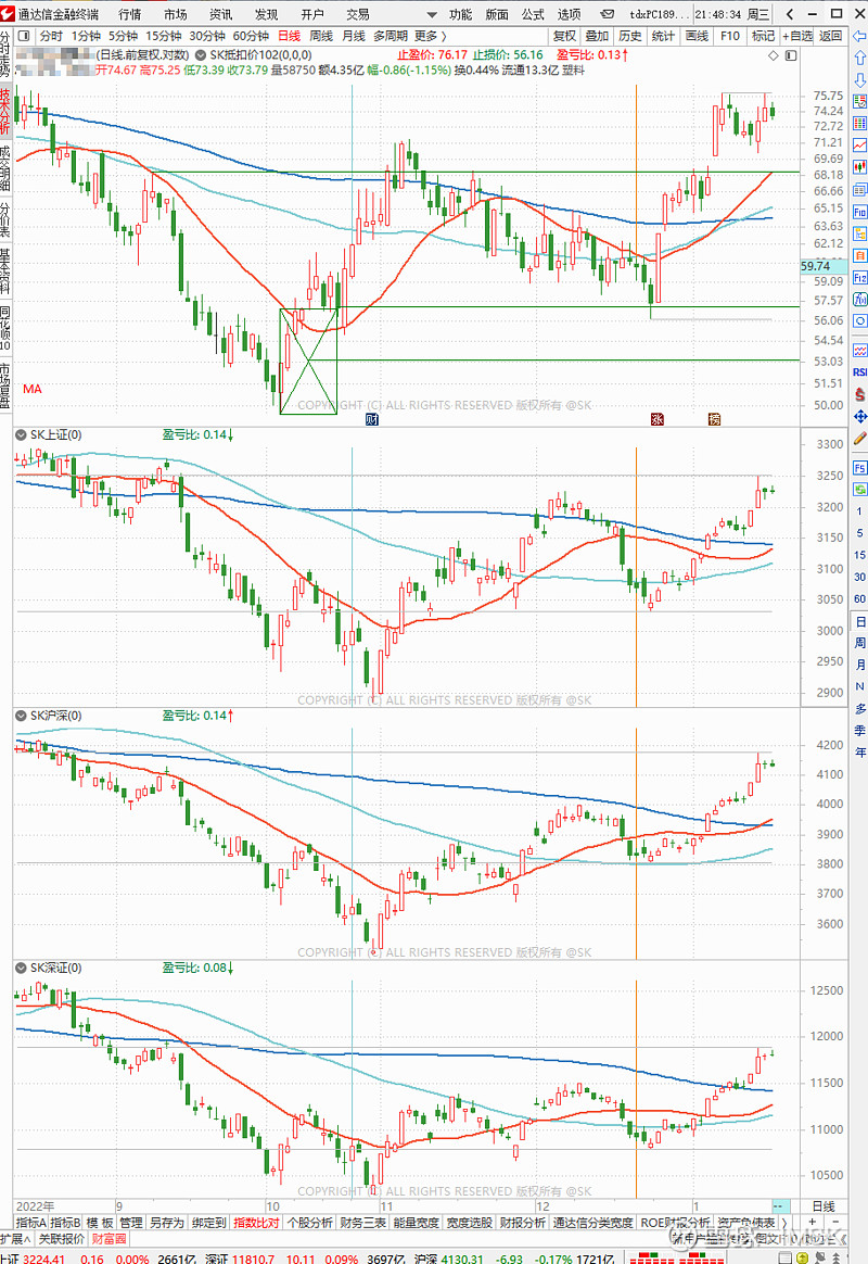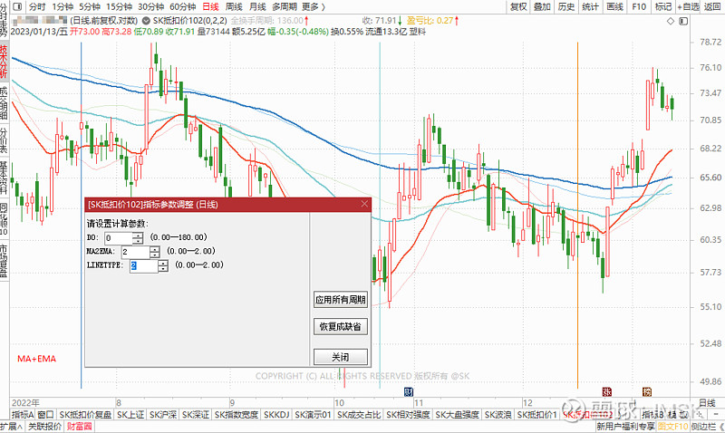 决定交易不能依赖单一指标,影响股价的因素是复杂的。本例子仅用于说明抵扣价在交易计划中的使用方法之一。在实际交易计划中,切换周线或60分钟线以观察均线变化也是必须的过程。