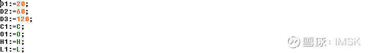 代码中绿色的这几个字母分别代表股价的4个数值,C 收盘价,也可写成CLOSE;O 开盘价,也可写成OPEN;H 最高价,也可写成HIGH;L 最低价,也可写成LOW;