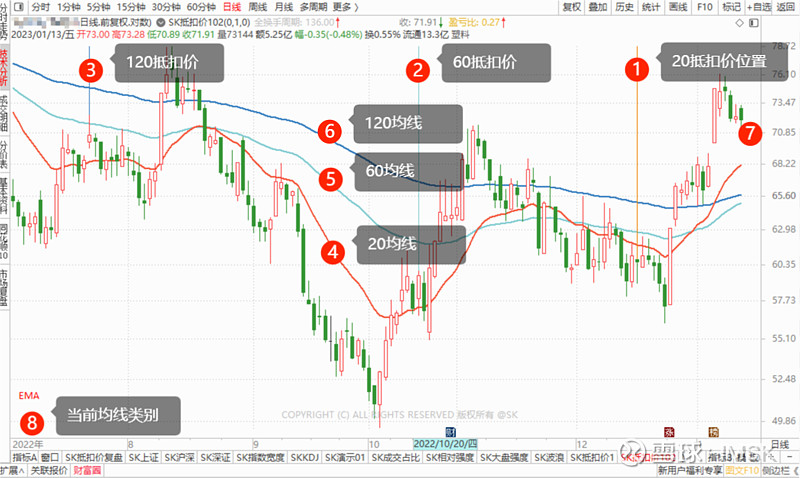 ④⑤⑥为抵扣价所使用的均线(默认为20、60、120);