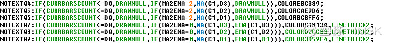NOTEXT04:IF(CURRBARSCOUNT<=D0,DRAWNULL,IF(MA2EMA=2,MA(C1,D3),DRAWNULL)),COLOREBC389;