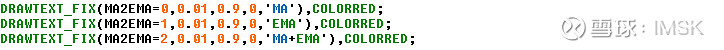 DRAWTEXT_FIX(MA2EMA=0,0.01,0.9,0,'MA'),COLORRED;