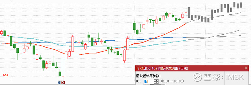 未来N天假如收盘价缓慢向上走(升幅小于抵扣价),均线会缓慢向下,有利空头;