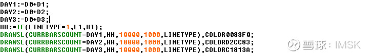 这段代码的作用是画出3根垂线指向对应抵扣价的位置,并且会跟随D0参数的设置而变动。