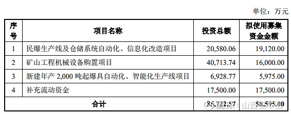 其中,民爆生产线及仓储系统自动化、信息化改造项目建成后,将大幅提高公司生产的自动化、智能化及本质安全水平,提升生产经营效率,进而打造“高端化、智能化、绿色化”工厂,以适应民爆行业转型升级发展要求。