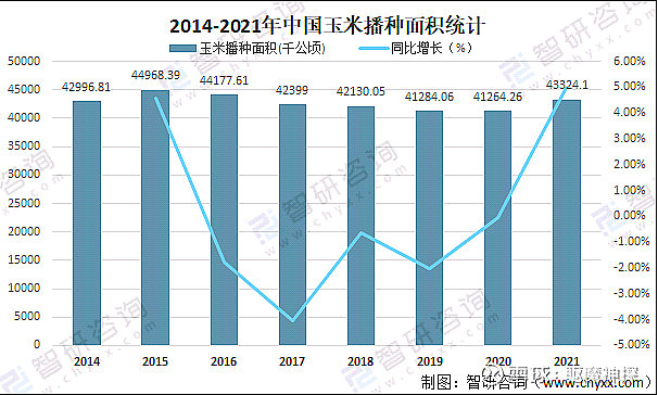 2021年我们玉米的产量达到2.72亿吨,同比增长4-5%,播种和单产都在提升,但与消费量相比仍然不足。按照我们21年的播种面积43324千公顷,继续增加3%的种植面积,播种面积大约是44600千公顷,将会接近2015-2016年的上一个高峰期。加上今年一号文件的政策是延续对生产者的补贴,可以看出目的也是刺激产量的增长,意在增产应对下游的需求增长。