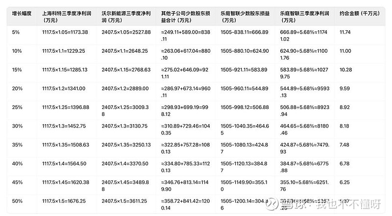 7.其他控股子公司三季度不同增长幅度下乐庭智联三季度业绩对比表