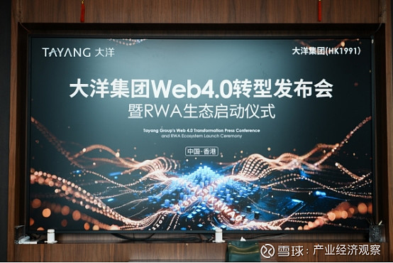 8月20日,香港主板上市公司大洋集团(HK1991)在港成功举办“Web 4.0战略发布会暨RWA生态启动仪式”,正式对外发布Web 4.0转型蓝图,并启动RWA生态建设。