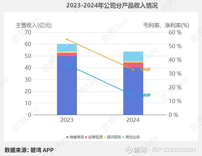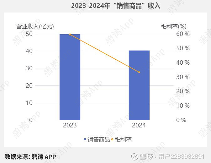2024年销售商品营收40.28亿元,同比去年的49.73亿元下降了19.01%。同期,2024年销售商品毛利率为33.17%,同比去年的59.53%大幅下降了44.28%。