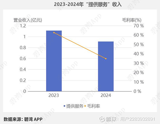 2024年提供服务营收9,121.96万元,同比去年的1.11亿元下降了17.49%。同期,2024年提供服务毛利率为34.78%,同比去年的62.61%大幅下降了44.45%。