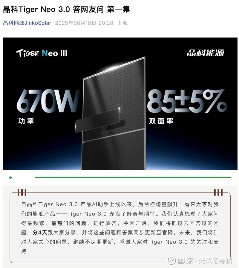就在今天夜间(8月18日),晶科能源公众要更新了一篇文章: