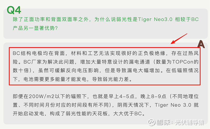 Q4:除了正面功率和背面双面率之外,为什么说弱光性是Tiger Neo3.0 相较于BC产品另一显著优势?