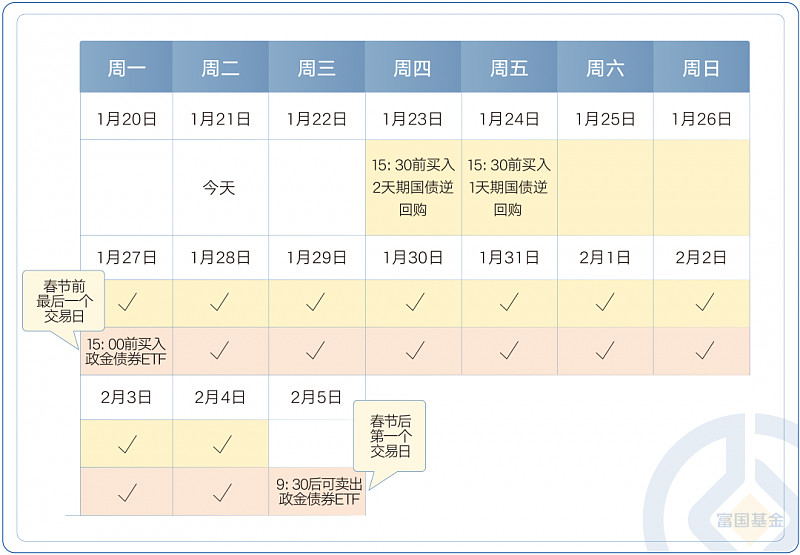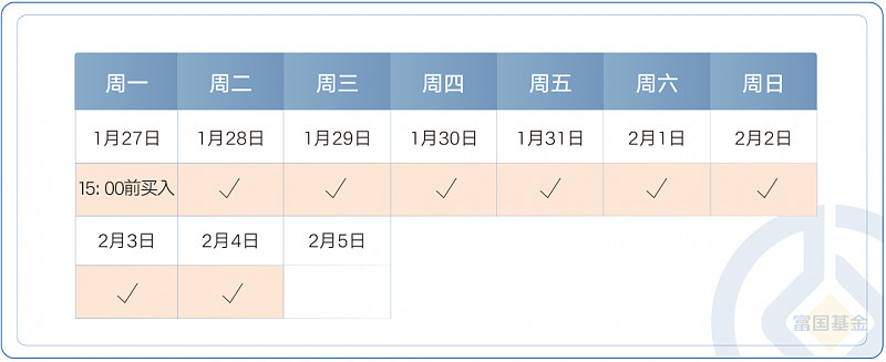 比如,在1月27日(下周一)15:00前买入短债基金,那么春节期间的票息收益会在2月5日的基金净值中有所体现。