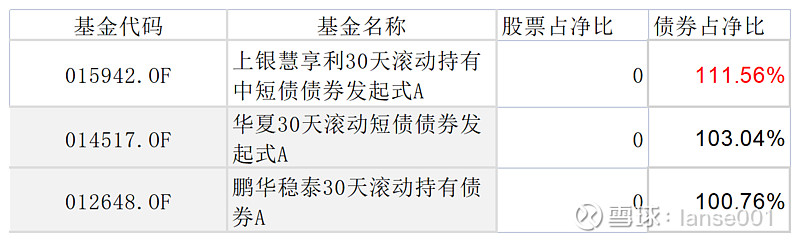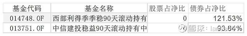 3只基金都是纯债基金,不持有股票,从持有债券占净比看,西部利得季季稳90天的121.53%,中信建投稳益90天的93.8%4,.杠杆最高的是西部利得季季稳90天。