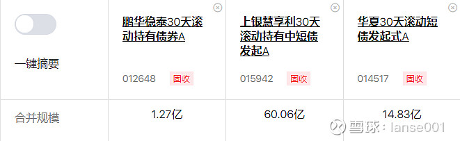 合并规模:最高的是上银慧享利30天,其次是华夏30天的8.52%,鹏华稳泰30天最少。