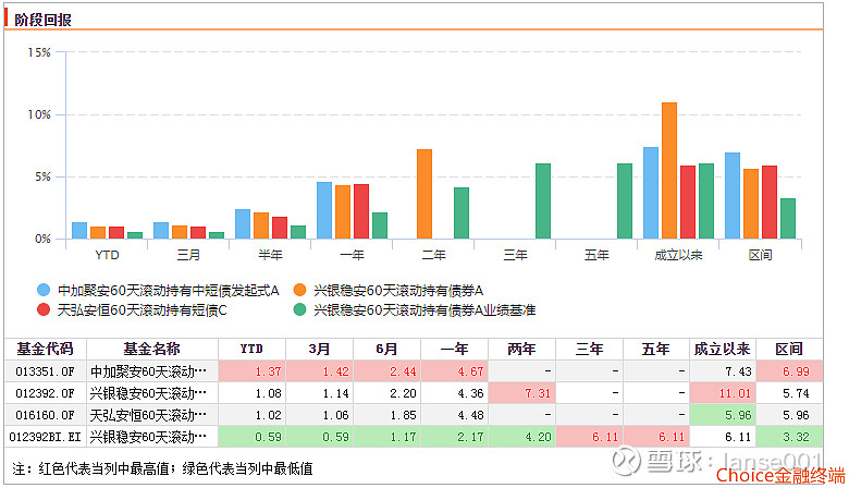 兴银稳安60天和天弘安恒60天表现都比较好。