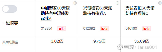 合并规模:最高的是天弘安恒60天,其次是兴银稳安60天,中加聚安60天最少。