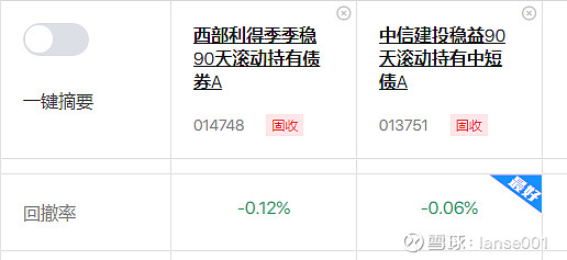 近1年最大回撤:从低到高分别为:中信建投稳益90天的0.06%,西部利得季季稳90天的0.12%,