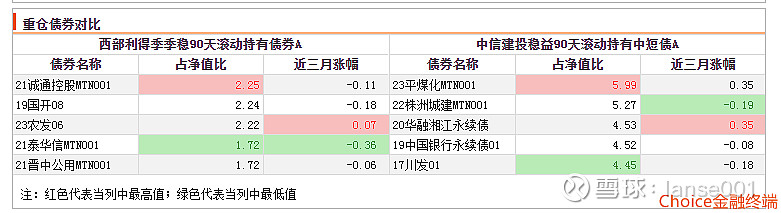 合并规模:较高的是西部利得季季稳90天,中信建投稳益90天少一些。