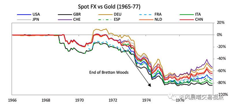 在我们所研究的主要案例中,所有经济体都经历了一种典型的“挤兑”动态,因为对央行发行的货币的索取权数量,高于能够满足索取权要求的硬通货(通胀是黄金)的数量。美元是英国储备货币贬值的原因,因为当时英镑与美元挂钩。