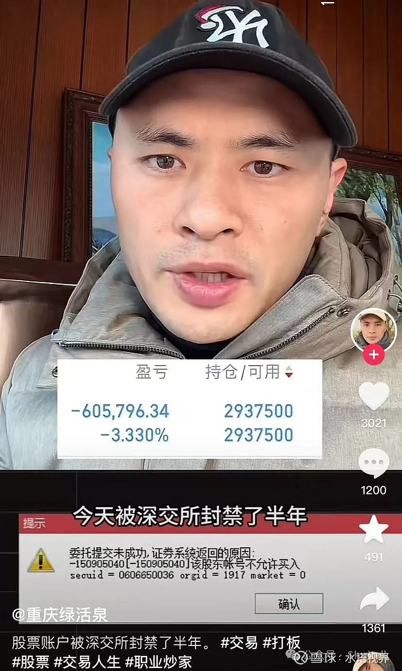 某音上关注的一位打板选手,被深交所给封号了半年,半年之内只能卖不能买。