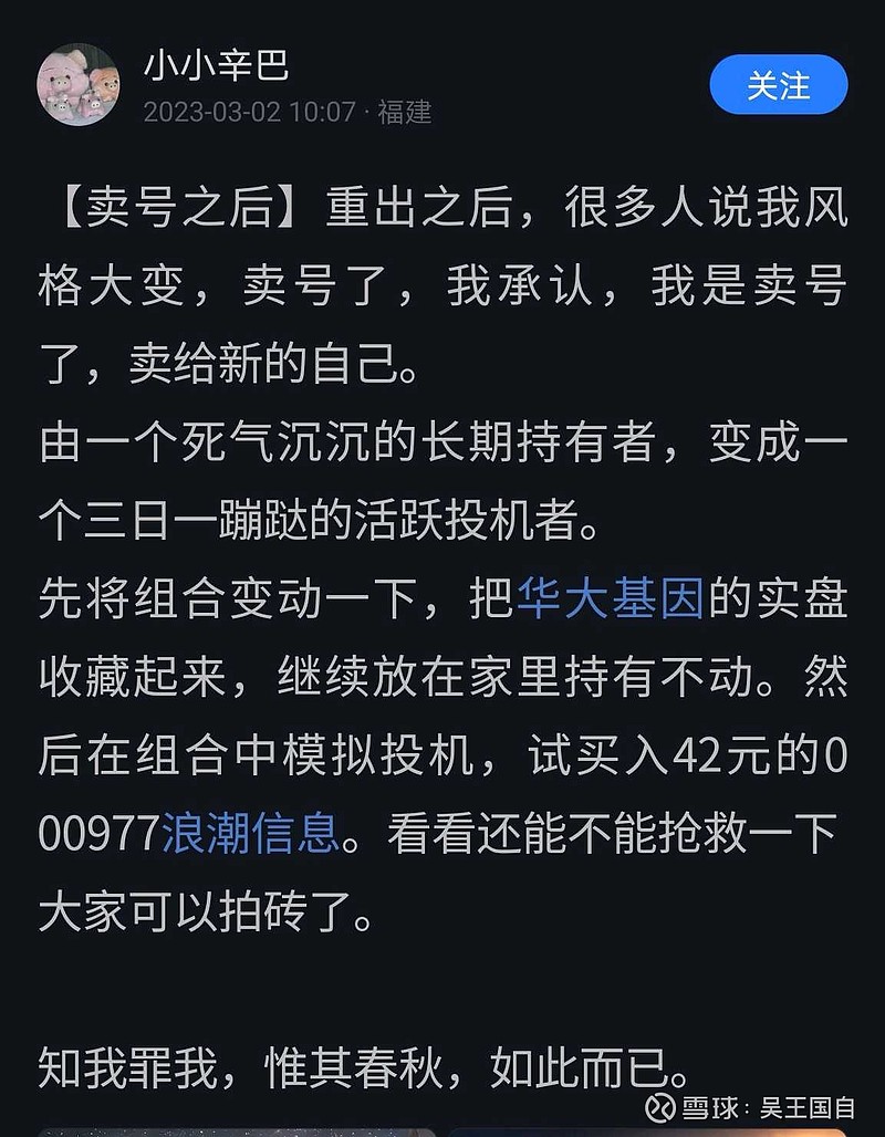 当然也有人说他已经卖号了,现在发的帖子与原来的风格完全不一样,很可能是别人发的,专门用来割韭菜的。这个我也找来了一些信息作为支撑。