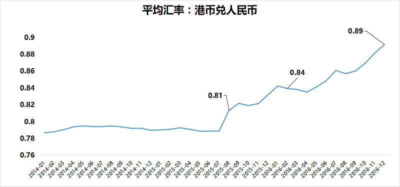 第三,港币与美元直接挂钩,对冲了人民币汇贬带来的损失。