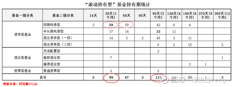 2、“持有期”以90天和30天为主;短债基金以30天和60天为主