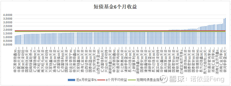 在163只滚动持有型的短期纯债基金中,有160只成立时间超过6个月。近6个月收益,最小值为1.1435%、最大值为3.5750%,平均收益1.84%;同期短期纯债基金指数收益率1.73%;