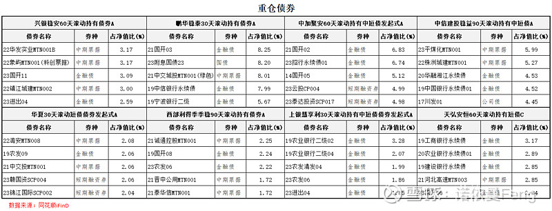 重仓债券与主要券种配置并不总是完全一致。