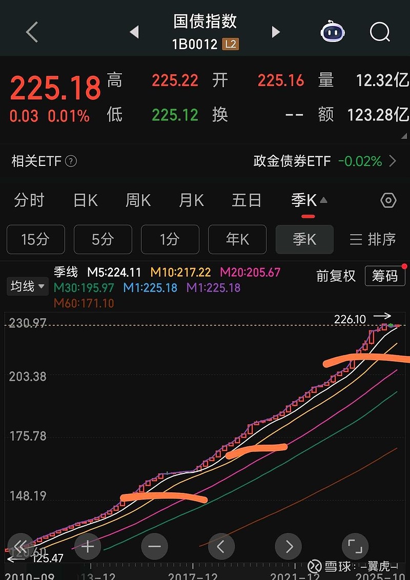 债券指数,每个五年左右会有一次持续几个季度的调整