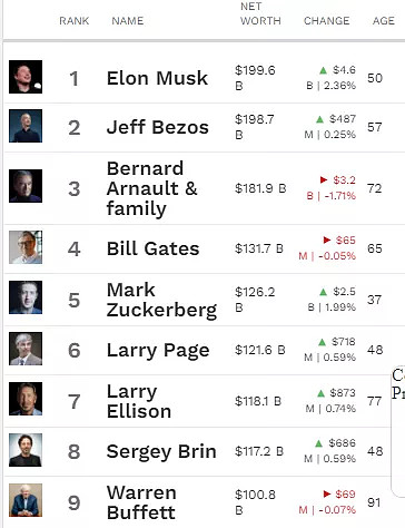 截止今天特斯拉的股价去估算,并不包括太空公司SpaceX的估值,马斯克稳坐世界首富,身家1996亿美元。排第二的是前 $亚马逊(AMZN)$ CEO 贝索斯,1987亿美元。因为马斯克并未和格莱姆斯结婚,所以对其资产不会有太大影响。 $Facebook(FB)$