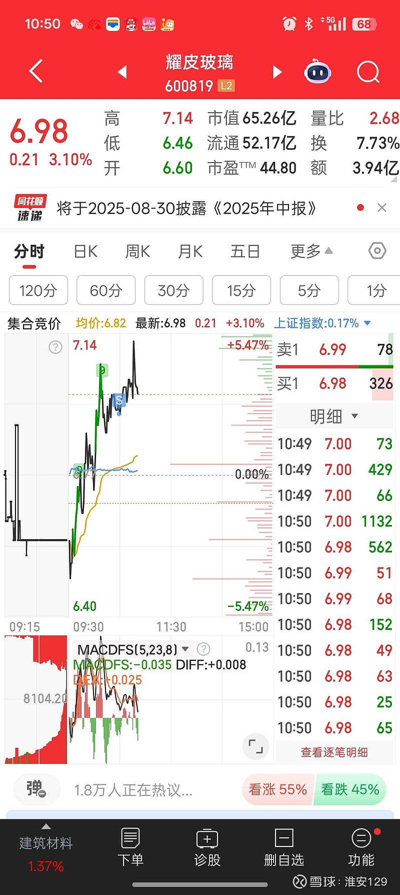 $耀皮玻璃(SH600819)$