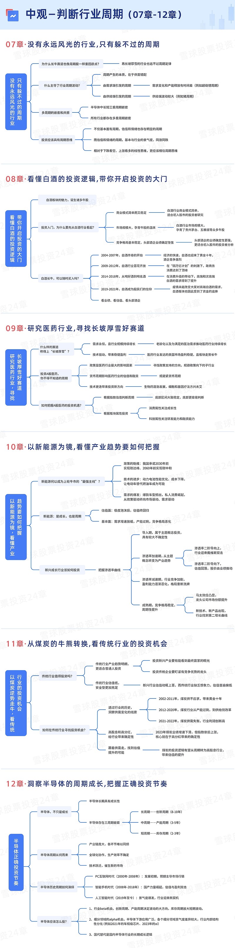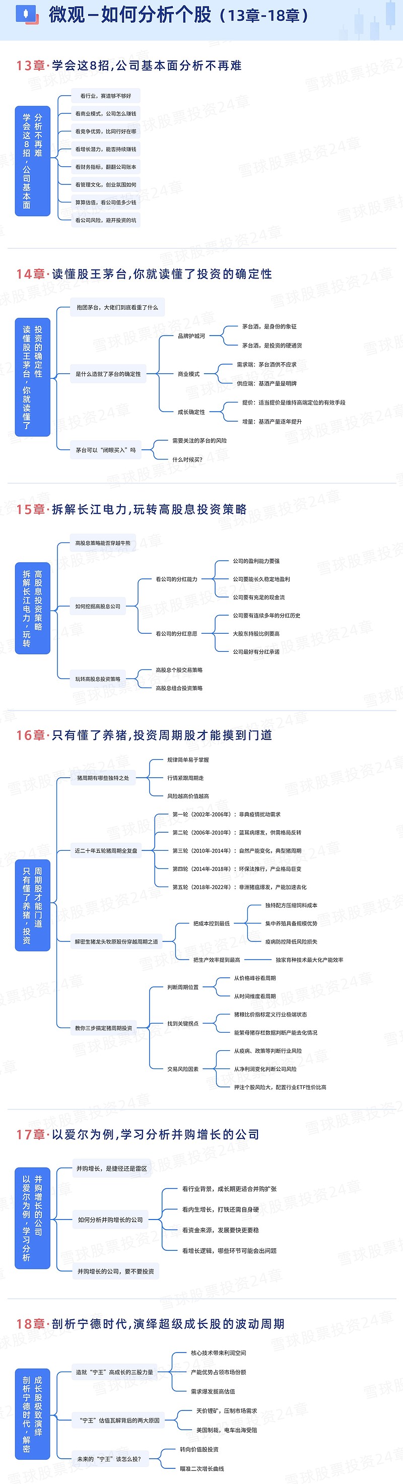 雪球官方打造的《雪球股票投资24章》从宏观、行业、个股、交易四个方向入手,基于历史数据和事实,总结方法和技巧,力图洞察市场周期,剖析波动背后的动因。